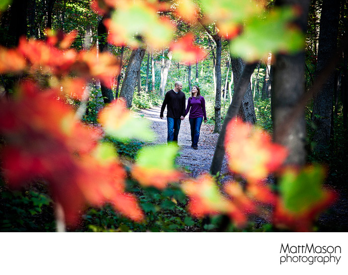 Shooting engagement sessions is always a blast. However, this one was particularly wonderful for me. You see October proved to be the busiest month of the year and while on one hand I felt like I had no time to go to Baraboo, WI and Devil's Lake to shoot this session, getting out in the fresh air and hanging out with these two was more refreshing than I would have ever imagined. We hiked up the mountain to find the place where Phil proposed to Shey. All of us consider ourselves active and athletic and at first wouldn't admit to wanting to stop and take breaks until I broke the ice and asked to take a moment, pretending that my gear was weighing me down. We took shots on the cliffs, along the paths, on top of boulders, fallen trees, the railroad tracks and more. Here are the photos from the session that became a wonderful break within a busy time for me.